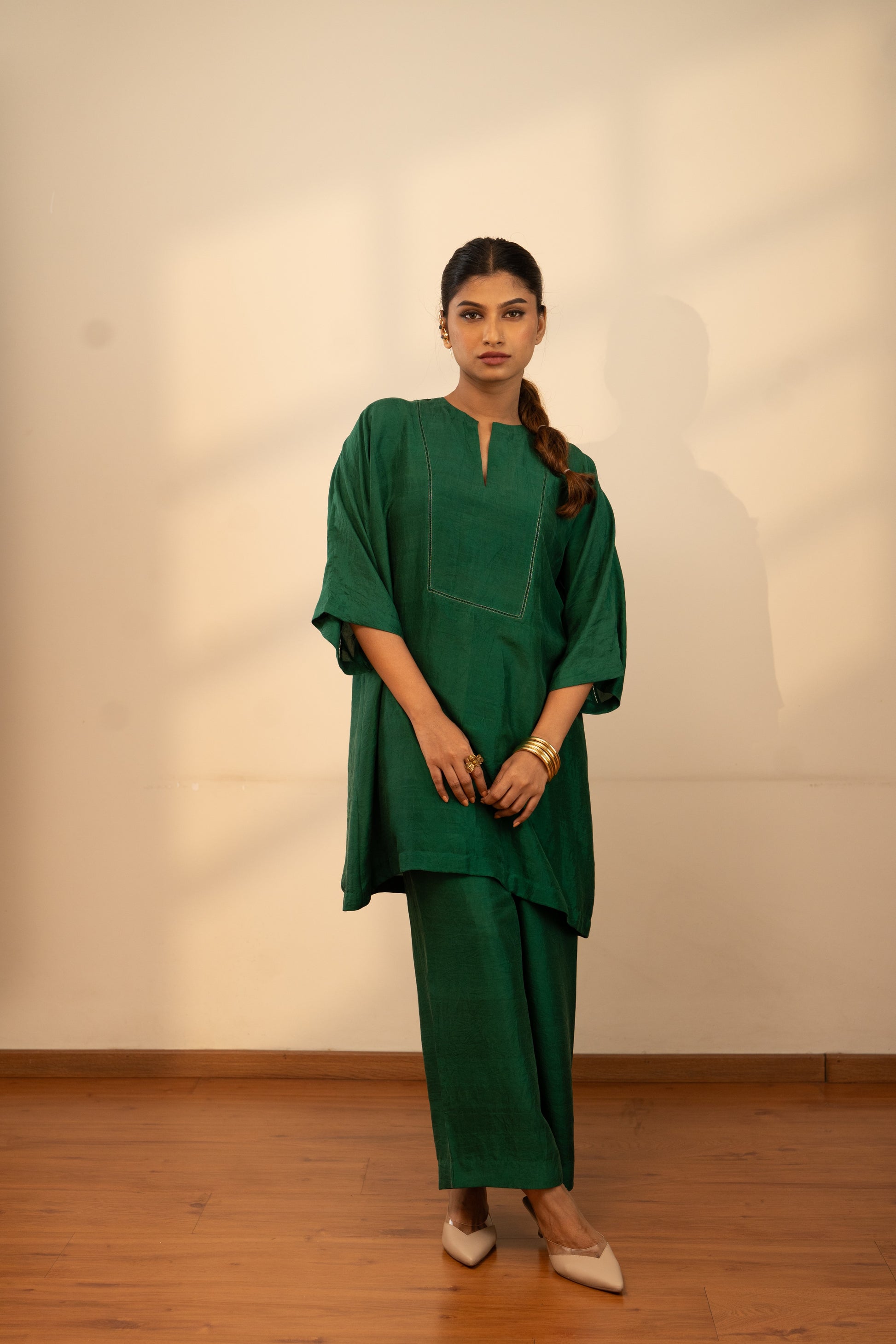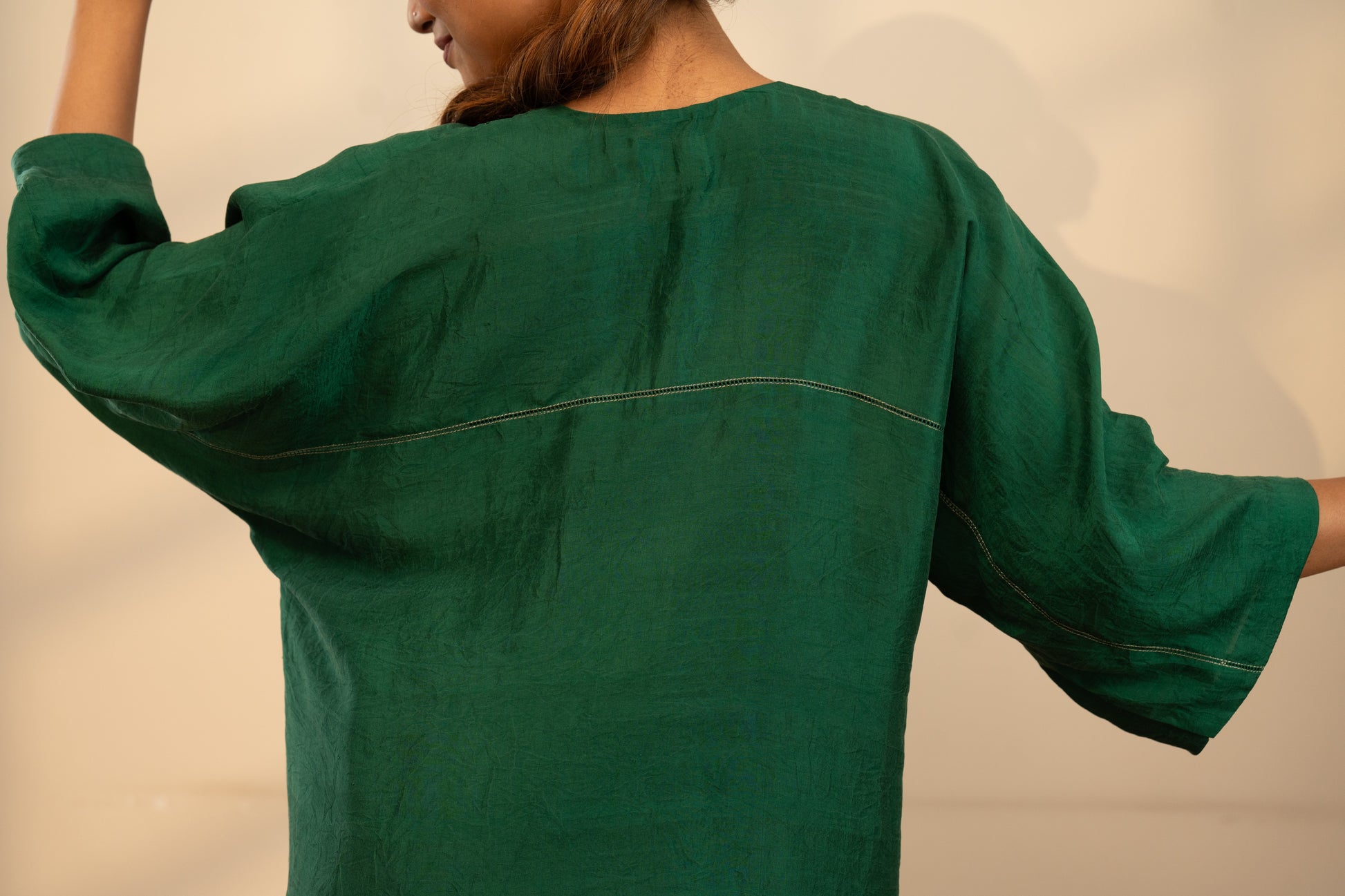 Step into vibrant elegance with the Emir Top, crafted from rich Mulberry handloom silk in a lush Abundant Green.