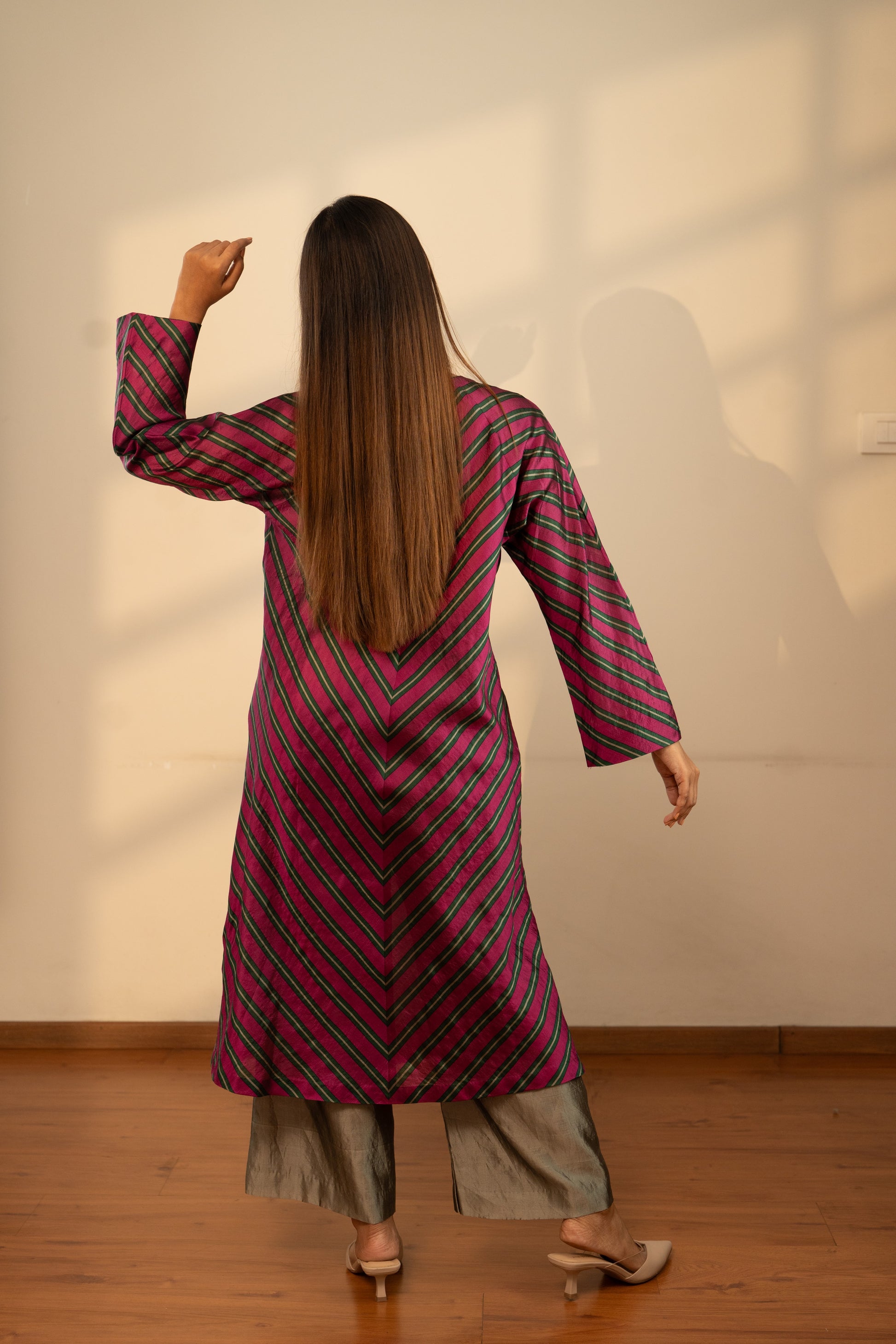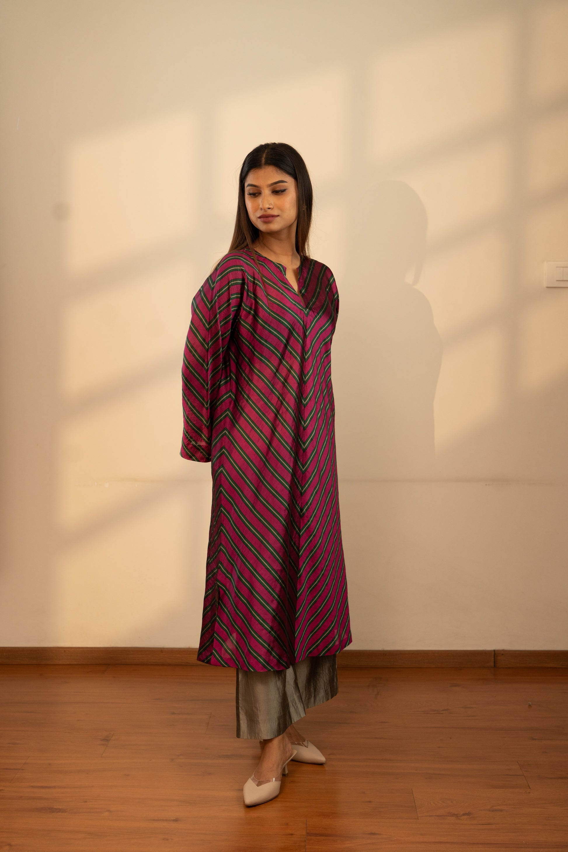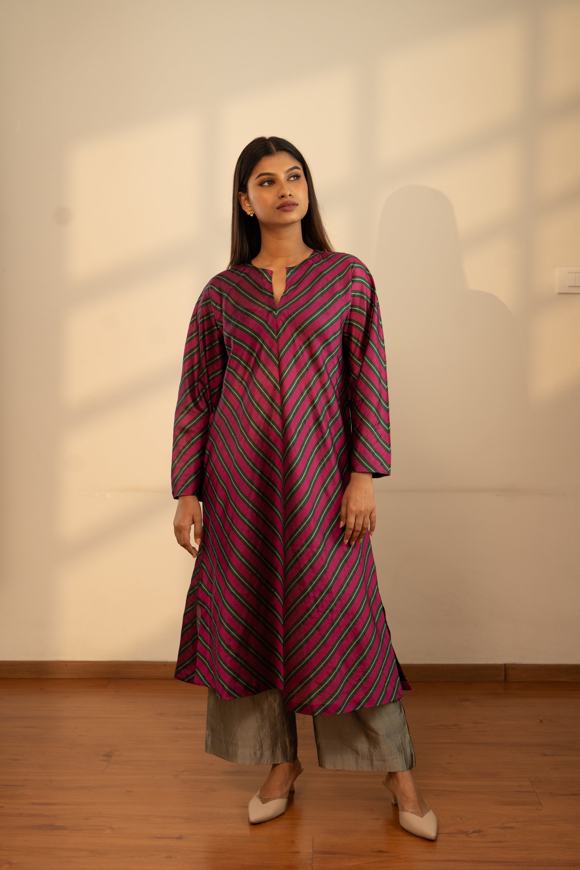 Brighten your wardrobe with the Erah Top, a stunning Bangalore handloom silk kurta in Vivid Fuchsia Pink.
